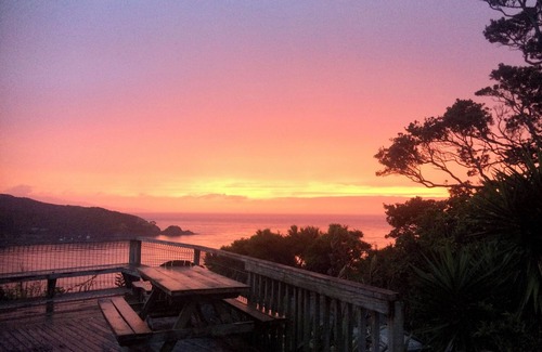 The large deck overlooks the sea, Coromandel to the west, the lit up Sky Tower in the distant Auckland on a crisp night, and the hills of Leigh on a clear day. The expansive dusk sky changes the view every evening, with the sun setting into the sea in the summer months.