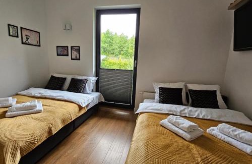 Tu lasek tam rzeczka is located in Górno, just 15 miles from Świętokrzyski National Park and 17 miles from Raj Cave. This property offers access to a terrace and free private parking. The vacation home has an outdoor fireplace and a hot tub. With free Wifi, this 3-bedroom vacation home provides a flat-screen TV, a washing machine, and a fully equipped kitchen with a dishwasher and oven. Towels and bed linen are featured in the vacation home. There's also a seating area and a fireplace. There is a garden with a barbecue at this property, and guests can go cycling nearby. Bishops’ of Krakow Palace is 11 miles from the vacation home, while Toys Museum is 9.1 miles away. Radom-Sadkow Airport is 52 miles from the property.