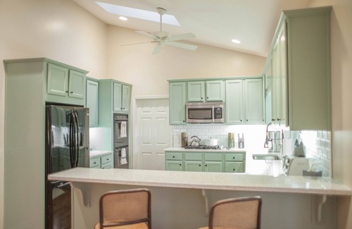 This house has a newly renovated Kitchen and Master bathroom. Each bedroom has its own bathroom. Enjoy watching the sunset from the deck or enjoying a meal with your family around the outside table. The Kitchen is fully stocked with every kitchen tool you will need to host a meal with your family. 55 inch and 65 inch TVs can be found upstairs and downstairs so everyone can space out and watch what they want. All TVs have a ROKU to access your favorite streaming services.