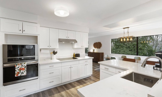 Spacious living and dining rooms with a fully stocked kitchen. Great place for families. Large yard + deck with BBQ grill, patio furniture, BBQ pit, and tons of lawns games. Children’s amenities include: high chair, pack n play, small amount of toys/board books, children’s cups/plates/utensils.