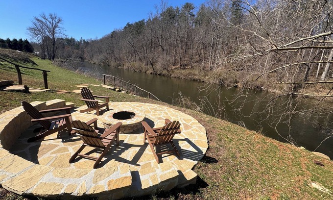 Relax on the back porch or balcony of our beautiful river front home on the bank of the Tuckasegee river. Located just a few miles from charming downtown Sylva, North Carolina and minutes from Western Carolina University. Tucked Inn on the River is the perfect home base for fishing, hiking, shopping and exploring all that the mountains of Western North Carolina have to offer. The home has 3 bedrooms, 3.5 baths, a game room, living room and fully equipped kitchen with sleeping for up to 10.