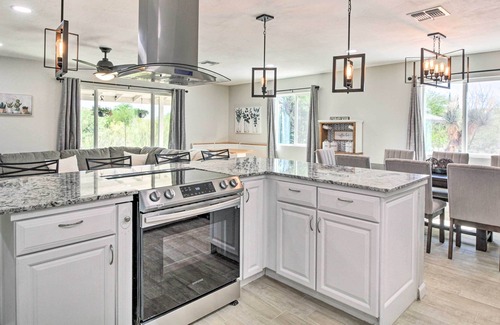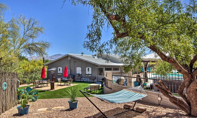 Relaxation and outdoor recreation await at this sunny Tucson villa! Packed with must-have amenities and plenty of space to gather, this 5-bedroom, 3-bathroom vacation rental is perfect for sightseers and nature lovers to explore the best area attractions, from top-tier Mexican food to over 130 miles of paved bike paths. This idyllic getaway features high-speed WiFi and a picturesque mountain view, as well as an expansive outdoor entertainment area with a pool, a hot tub, a fire pit, and more!