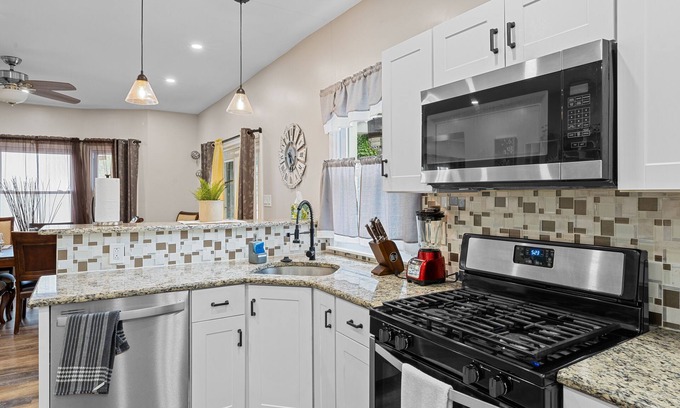 While you're here, you can enjoy all the comforts of home and more, including a refrigerator and an oven, as well as a stovetop and a dishwasher. Other amenities include premium bedding, laundry facilities, towels, and a sofa bed.