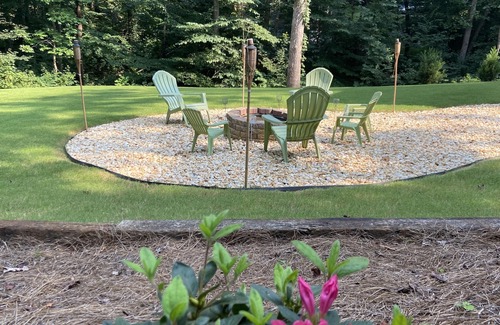 HUGE Back yard Fire Pit & Games: Enjoy the huge, flat backyard with an amazing fire-pit patio or swing on the hammock under the covered porch. Enjoy an outdoor game of Bocce Ball, Volleyball or lawn darts!