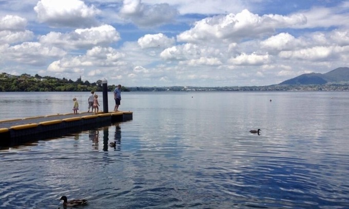 Ideally located 3 minutes walk from the Lake front and Two Mile Bay boat ramp. This well appointed house is sunny and spacious with great indoor outdoor flow. Nice quiet green street with school field and playground next door. Enjoy a BBQ on the elevated deck or relax in the comfort of indoors. Large 4K Wide screen TV with Netflix, CD/DVD/Blu-Ray player and huge DVD collection for entertainment. Plenty of off street parking for Boat or car (no garage parking) and well fenced to keep kids in if necessary. Mains pressure hot water ensures an enjoyable shower up stairs and down. Move the table and chairs inside or out according to the weather. Effective wood fire to warm the place in the winter and each room also has portable electric heater if needed too. Swim in the lake, river or soothing local hot pools.