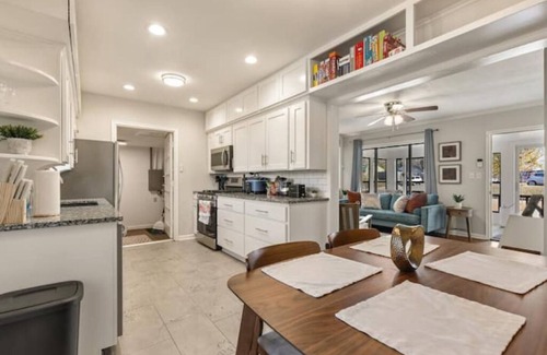 Enjoy this charming yet comfortable home, just steps away from the Tulsa Expo Center near gate 7. Find comfort in knowing that it is a 4 minute drive to the University of Tulsa, 6 mins to Cherry Street, 9 mins to downtown/BOK center, 10 mins to the airport or gathering place, and 2 mins to shopping for essentials. Don't worry, you can enjoy a cup of coffee in the sunroom or backyard deck area in this quiet neighborhood. This home has a spacious living space and comfortable beds.