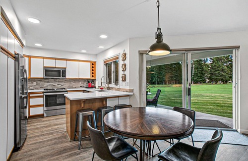 Tupshin Peak Condo is a ground-floor unit overlooking the sixth green with expansive views of Nason Ridge and tons of sunlight. The name comes from the local Chinook language meaning "needle."