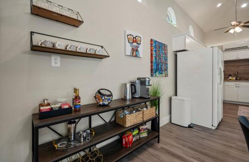 A recently renovated vacation home, Turkey Mountain Bungalow By Tulsa Getaways offers accommodations in Tulsa. This property offers access to a patio, free private parking, and free Wifi. Outdoor seating is also available at the vacation home. The air-conditioned vacation home consists of 1 bedroom, a living room, a fully equipped kitchen with a dishwasher and a coffee machine, and 1 bathroom with a bath and a hair dryer. Towels and bed linen are provided in the vacation home. There's also a seating area and a fireplace. Guests at Turkey Mountain Bungalow By Tulsa Getaways will be able to enjoy activities in and around Tulsa, like cycling and hiking. Philbrook Museum is 6.5 miles from the accommodation, while Brady Theater is 8 miles away. Tulsa International Airport is 16 miles from the property.