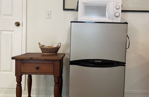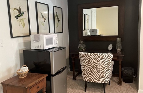 AMENITIES: mini fridge with freezer, microwave, toaster, coffee maker, selection of teas & coffee, cork screw, WIFI, night lights, some paper goods, board games, books & DVDs provided. In the cedar closet you'll find extra blankets, pillows, and iron & ironing board, hangers & luggage rack. Bathroom vanity houses a hair dryer, soaps and shampoos, plenty of tp and some cleaning supplies in case guests need them. Linens are cleaned using scent and dye free detergents and air filters are frequently changed- we are sensitive to those with allergies.