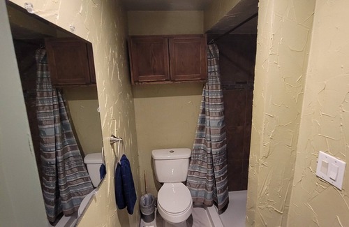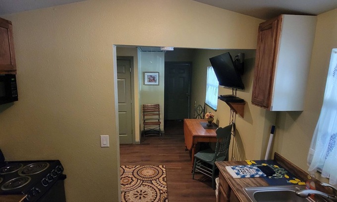 NOTE: Second bedroom area is a small loft with two twin beds. Cabin 3 is right in the heart of the Arbuckle Mountains inside of Turner Falls Park. The cabin is near the waterfall at Turner Falls. It is a one-bedroom that has a full bed with the couch that folds out into a twin bed. Two twin beds in the loft for Small kids. This is in the center of the park. You will love the cabin. Get out of the heat in the summer time. Checkout the Collins Castle, Zipline and Caves in the area.