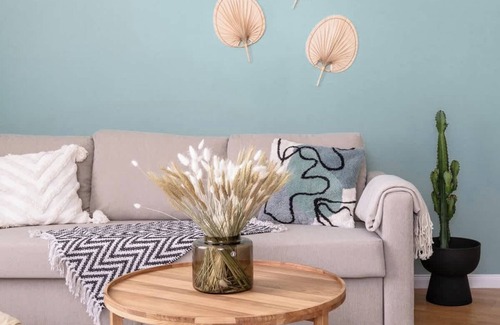 Indulge in the inviting space of our boho-chic apartment, adorned with pastel colors and modern elements. This apartment offers a delightful blend of comfort and artistic flair.