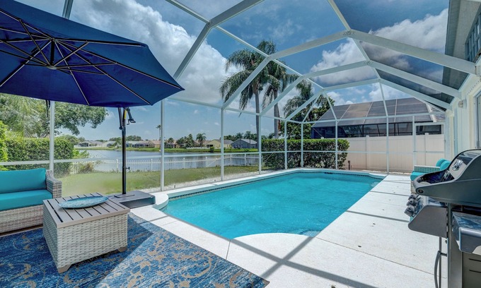 One of the highlights of this property is the private screened-in pool area, where you can bask in the warm Florida sunshine and take refreshing dips at your leisure. Comfortable exterior seating along with a large umbrella offers the perfect setting for outdoor dining and relaxation. The pool overlooks a picturesque pond, providing a tranquil backdrop for your vacation experience. Looking to bring your furry friend? The backyard is fully fenced in, pets are allowed with prior approval and an additional cleaning fee.