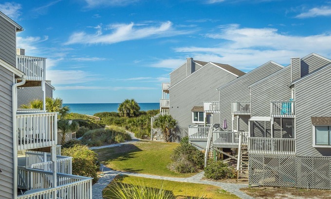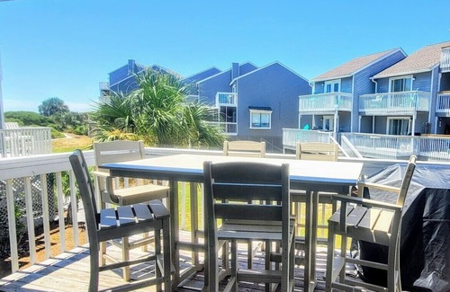 The ground floor begins the pampering with space for at least two vehicles in your own carport; a stocked beach closet with 4 beach chairs, beach cart, cooler, crab net, crab bucket (helpful for disposing of cooled remnants of beach fires), boogie board and sand toys; an Enclosed shower with hot/cold water; water hose; and the only private Tiki Bar area in the community to enjoy with your crew when not on the beach. Check out the cute polywood furniture for dining and space to hang a hammock to enjoy the afternoon breeze. The Foyer entrance has hooks and space to kick off your shoes before going up to the main level of the home.