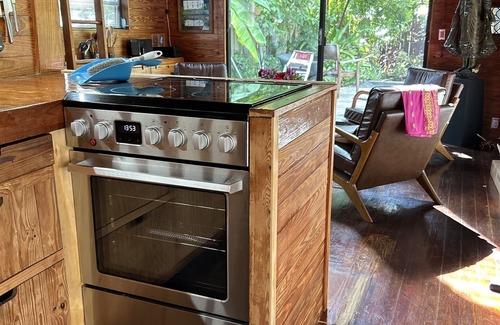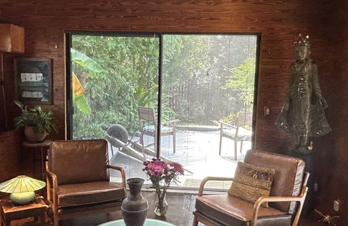 Come finish your novel or dip your body into the sunken black tiled jacuzzi. Dine under the covered breezeway underneath a bamboo pergola, protected from weather, with beautiful views of the garden illuminated at night by solar lighting. You will find magic and inspiration at Turtle House, along with all the comforts and amenities of modern living including a parking space that is part of the property.
