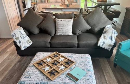 The second Bedroom has a beach house theme with Ocean themed Bedding.