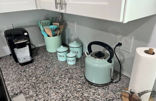 Luxury Counter Coffee Bar includes a Keurig and Nespresso VertuoPlus Coffee Machines with Milk Frother for those Frothy Coffees!! Choice of syrups, Crystal Rock Brown Sugar Stirrer Stick and a selection of Pods included for the first few days.