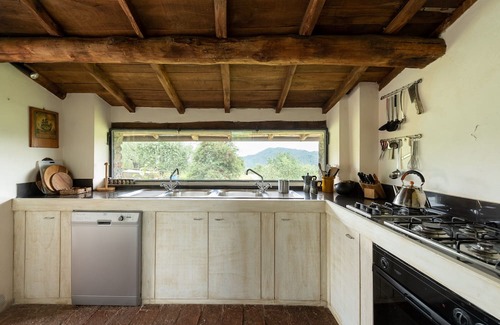Podere Consani is a group of old houses on the top of a small hill - it lies in an idyllic setting amongst well-tended natural gardens,(lavender, roses, lemons and herbs) that lead into the adjacent olive groves, vineyard & woodland, in the hills between Lucca and the coast. The house shares a swimming pool with another property in the garden - this is also possible to be rented if you are a bigger group (See property 75096 Casa Cherubino - sleeps 6/7).