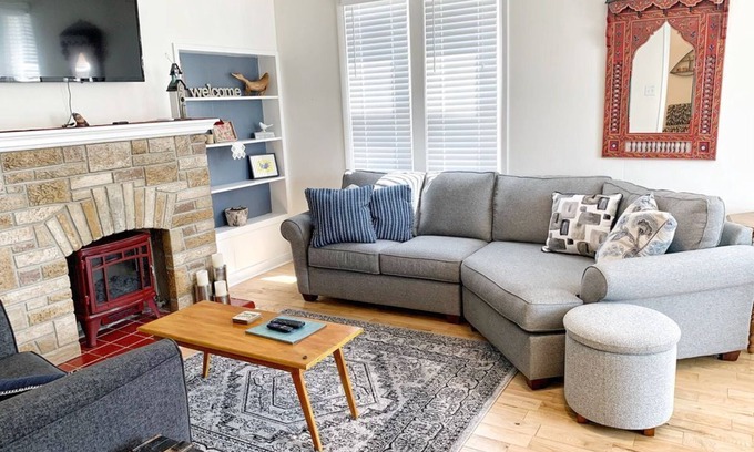We are a bright red home located on a side street, just 4 blocks from downtown. We offer 3 bedrooms, large living and dining areas, a sweet patio spot and a fenced in yard. Start up the fire pit and share your stories around the flames. Walk downtown to your favorite coffee place and enjoy this charming town.