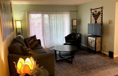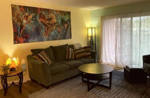 Your room includes a comfortable queen bed, full closet and dresser. Your bathroom is stocked with toiletries and towels. The kitchen has all of the amenities you need for cooking meals or just making coffee or tea. The pull out couch in the living room accommodates two extra people in your party.