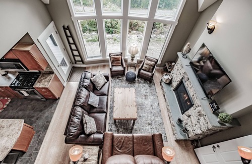 Enter Twin Peaks East through the ground level or come into the main level via the exterior stairs and deck. The building is constructed with Hardie Board siding and composite decking, so rest assured, your outdoor experience will be clean, safe, and enjoyable. A designated space for secure ski storage makes it easy to unload your gear and store it from the driveway. In this same space behind the garage door, a Tesla charging station is available for your use if needed.