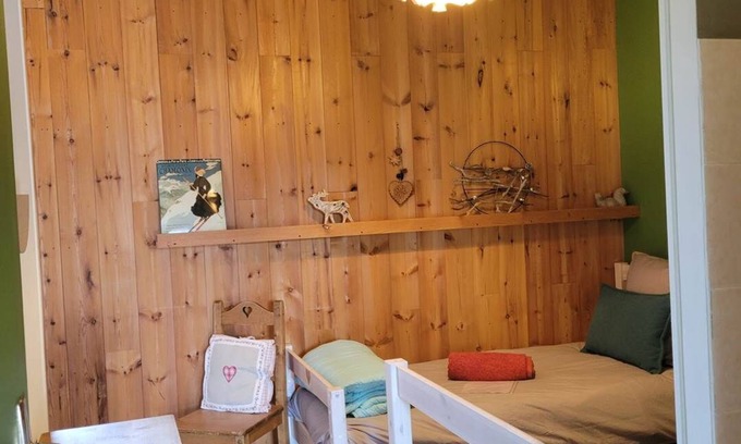 Small room of 10m2 with 2 beds 90cm side by side mountain view.