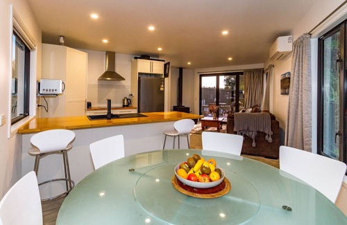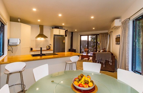 Set amongst similar homes in park like setting amongst established trees and native birds and plants. This 2 bedroom home is double glazed and gets the morning sun which streams into the open plan kitchen and living area. There is an outside deck which is surrounded by natural fauna and bird life. Home has a heat pump and wood fire in the main area and wall heaters in the bedrooms for your warmth and comfort. Two double beds with a single child foam mattress bunk above one double bed, for a guaranteed good night's sleep after a day on the mountain. Linen is included plus blankets and duvets and towels. Other modern comforts t.v. stereo, dishwasher, microwave etc...