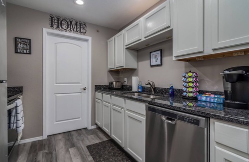 Each of the condos have a kitchen that is fully equipped and perfectly suited for home cooking when you're not eating at one of the wonderful Branson restaurants!. Enjoy the well stocked kitchens with stainless steel appliances including full size fridge with freezer, electric stove and oven, microwave, & dishwasher. We also have a keurig coffee maker, water kettle, griddle, blender, mixer, toaster, crockpot, and many other items. We also provide a high chair (in each condo) and provide dishwasher pods.