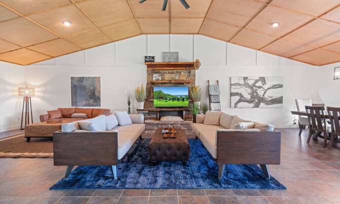 Best-rates for the Muskogee house starts from $306 per night with includes Air Conditioner, Pet Friendly, TV, Fireplace/Heating, Child Friendly, Kitchen, Laundry, Parking, Security/Safety, Barbecue/Outdoor Cooking, Internet StayAndPlay offers fully equipped golf villas, golf hotels, golf resorts, luxury golf cabins, and exclusive golf retreats, making it easier than ever to find your perfect golf escape — ideal for families, peaceful getaways, or pet-friendly retreats with the whole crew.
