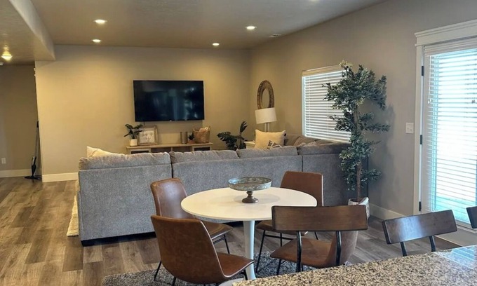 Experience Saratoga Springs like a local in this 2-bedroom basement apartment. This fabulous property offers a soothing atmosphere that will make your stay enjoyable. The bedrooms feature a king bed and a queen bed, ensuring a restful night's sleep for all guests. The bathroom is equipped with a shower and a hair dryer for your convenience. Additionally, there is a theater room with 3 sofa beds providing extra room for relaxation. Take advantage of the fitness room to stay active during your stay. Other amenities include A/C, heating, iron, washer and dryer, WiFi, and games. We look forward to hosting you!