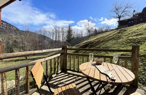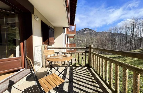 Accommodation: Apartment GENEPI - Residence Les Chalets des Evettes - Building CThis beautiful apartment of 37 m2 is located at the foot of the slopes of the Espace Diamant. It has a furnished east-facing terrace, ideal for enjoying an outdoor breakfast. Designed to accommodate four people, it can also accommodate up to six travellers. Located on the ground floor, the apartment offers an unobstructed view of the Val d'Arly. The residence Les Chalets des Evettes enjoys an indoor swimming pool.Description: One entry A bathroom with bathtub A separate toiletA living room with access to the terrace A dining/living area with convertible sofa bed type rapido, television, DVD player, Hifi channelAn open kitchen equipped : refrigerator, microwave grill, dishwasher, induction plate, hood First bedroom with double bed 140 + dressing roomA second bedroom with a quicko + TV convertible sofaOutside: Terrace with garden furniture A private parking spaceSki box *ACCES: apartment accessible without stairs via ski lockers.*TERRACE: In summer, you will have the opportunity to hang your bikes along the ramps of the private terrace, without having to pass them through the interior or the common areas.*InteriorPISCINE *Pets accepted (2 max)*Non smoking accommodationOUR OPINION: The apartment enjoys a mountain style decoration, all comfort. You will enjoy free access to the indoor pool, for unforgettable moments of relaxation. The residence is classified 3 stars, guaranteeing a quality stay.Additional services:- End of stay cleaning service: CATEGORY D (on request and subject to availability),- Rental of linen,- Booking with reduction of your ski passes,- Cot ready and high chair, stroller rental (on request and subject to availability).- Animal supplement: at current rate