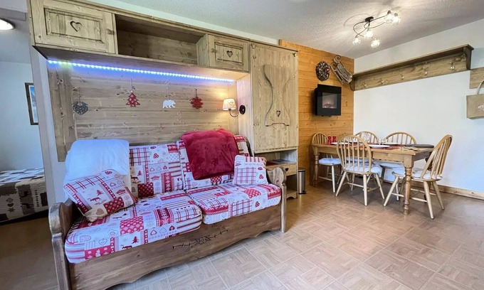 Details: Near airport : Lyon Saint-Exupéry Airport #LYS (163.0 km), Turin Airport #TRN (140.9 km), Geneva Cointrin International Airport #GVA (66.5 km) Deposit (in euros) : 400 Surface (m²) : 37 Balcony Ski locker Microwave oven Car park Dishwasher Television Number of pieces : 3 Number of bedrooms : 2 Number of cabins Number of double bed : 3 Number of single beds Number of toilets : 1 Number of bathroom : 1 Floor Pets Allowed Communal swimming pool Exposure : East Number of stars : Unclassified Distance Tracks : 0 metres Distance Ski School : 0 metres Cooked : 1 Dishes and cutlery : 1 Fridge Smoke detector Indoor pool Toaster kettle Coffee maker : 1 Elevator : 1 Raclette machine Fondue machine Hair dryer Heating : 1
