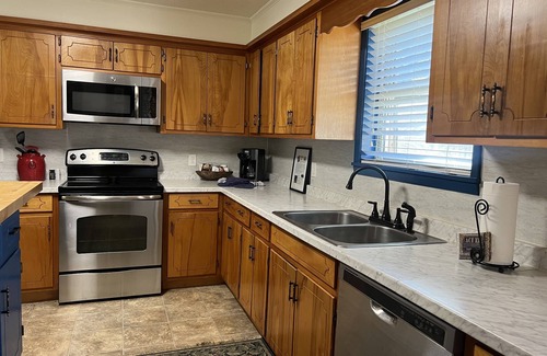 Our House at the Joplin Inn is a two bedroom, one bath house. There is a king