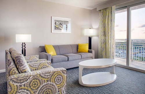 This spacious two-bedroom, ocean-front, lock out resort suite measures approximately 1,455 square feet. You will enjoy king beds in the master bedrooms, two sleeper sofas in the living rooms. Additional amenities include a full kitchen and dining area, two bathrooms, whirlpool tub, washer/dryer and a balcony. Maximum occupancy is eight.