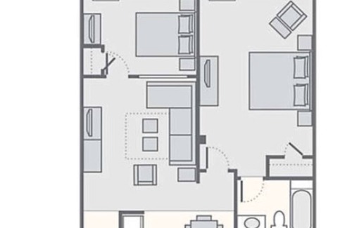 Bedroom 1 – King Bed, Bedroom 2 - 1 Queen Bed, Common Room -1 Sofa Sleeper, Sleeps 6 total guests.