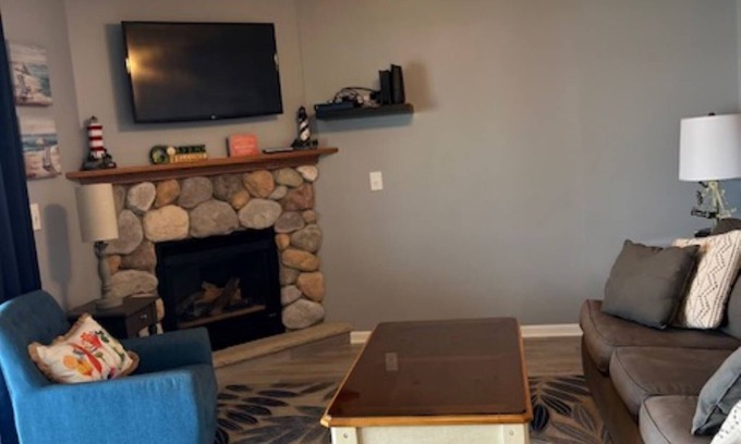Two-bedroom spacious lakefront condo at Portage Point Resort! is located in Onekama. Two-bedroom spacious lakefront condo at Portage Point Resort! provides accommodation, featuring Bedding/Linens, Wellness Facilities, Fireplace/Heating, among other amenities. This Condo features Bedding/Linens, Wellness Facilities, Fireplace/Heating, to make your stay a comfortable one.