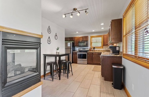 The Arcade Cabin offers a lower-level game room with a billiards table, darts, and two TVs to catch the day's games. An eat-in kitchen and upstairs living room with TV are also great for gathering. This cabin includes two upper level bedrooms with queen sized beds and a full bathroom with tub. The lower level next to the game room offers a bedroom with a new king bed, full bathroom and laundry area.