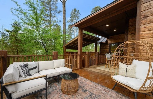 Ravenswood 2 BR/Sleeps 10/2 King/2 Full/Sleeper Sofa/3 Bath. Ravenswood is an immaculate 2021 Construction located in the heart of Hochatown! Nestled in the Eagle Mountain area of Hochatown, Ravenswood is conveniently located just minutes from Broken Bow Lake and Beavers Bend State Park. Access wineries, breweries, restaurants. Situated on over an acre lot, this two-story cabin will accommodate up to 10 guests, perfect for families and friends. No pets and no smoking.