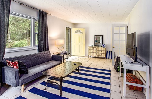 Both the house and cottage have living areas with TVs, dining tables and each has AC/Heat plus WIFI.