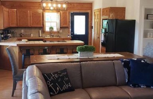 This beautiful two story cabin is near Eufaula Lake. Lots of space for a large family...sleeps 11. We offer the following: Free WiFi, 4 ROKU TVs, a fire pit, filet table, cornhole, gas/charcoal grill, balcony with a view of the lake. Never mind the clocks in the house....they’re set on 5:00 because it’s 5 O’clock somewhere!