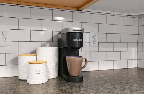 The first floor features a fully equipped kitchen with stainless steel appliances, cookware, and all the essentials to whip up a meal (or just brew your morning coffee). Dine at the table or perch at the bar with a glass of wine while someone else cooks.