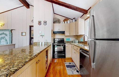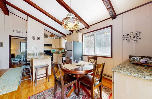 Back home, stock up the fridge and prepare your favorite recipes in the well-equipped, full kitchen complete with all the appliances, utensils, dishes, and other accessories you could ever need. Dine at the attached breakfast bar or gather around the nearby table - perfect for rainy or snowy day board games! In warm weather, meet up outside on the furnished deck where you can fire up the gas grill and dine alfresco while enjoying the sights and sounds of the surrounding forest.