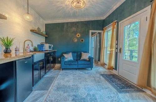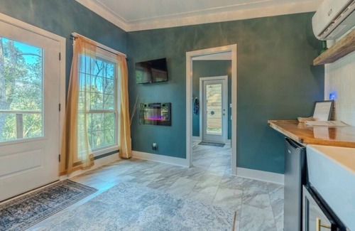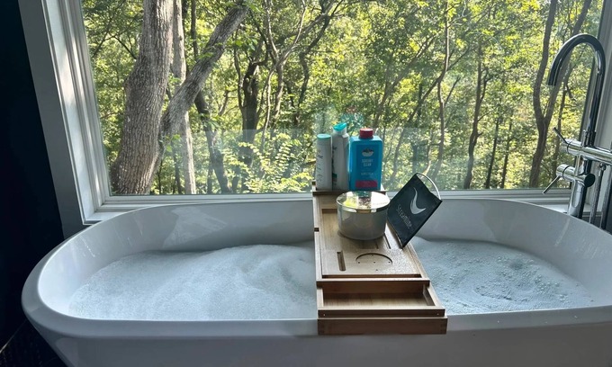 Please note: No pets, smoking or children allowed due to insurance policies. Treehouse sits up high and on edge of bluff. Experience Albertville like a local in this fabulous 1-bedroom cabin that has a hot tub right on the deck. We also have an outdoor shower with 2 large rain shower heads. And let’s talk about the soaker tub that has amazing views of the creek below! There’s no stove but we have a gas grill, microwave, mini fridge and keurig. Nestled in a peaceful setting, this cozy retreat offers AC, heating, and WiFi for guests' comfort. We think our place will help you experience everything Albertville has to offer.