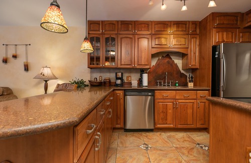 You'll love stepping out onto the patio to watch and listen to the stream run by, making for the absolute perfect mountain setting! Other in-unit amenities include a washer and dryer and complimentary Wi-Fi; you can also enjoy the complex clubhouse with shared indoor/outdoor hot tubs. And every Summit Mountain Rentals property comes stocked with plenty of linens, towels and hotel-like toiletries, and it’s professionally cleaned and inspected before each arrival. Our helpful staff is also available 24 hours a day to ensure you have everything you need to make your stay with us an unforgettable experience.