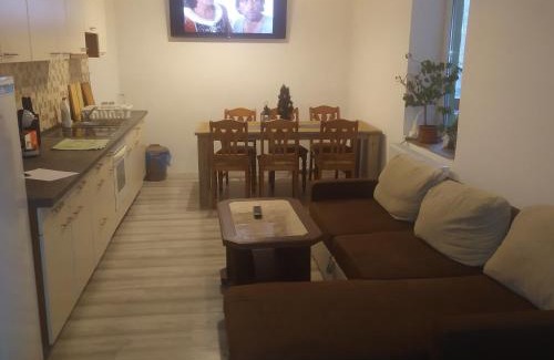 U Žabky in Horní Maršov provides accommodations with a seasonal outdoor swimming pool, a garden, and a terrace. This apartment offers free private parking, a shared kitchen, and free Wifi. The property provides a children's playground and outdoor furniture. All units are equipped with a TV and a fully equipped kitchen with a dishwasher, an oven, and coffee machine. A microwave, a fridge, and kitchenware are also featured, as well as a kettle. At the apartment complex, the units are fitted with bed linen and towels. Guests can make the most of the warm weather with the property's barbecue facilities. Skiing and hiking can be enjoyed nearby, while a ski equipment rental service and ski storage space are also available on-site. Bus Stop Strážné is 18 miles from the apartment, while Western City is 21 miles away. The nearest airport is Pardubice Airport, 55 miles from U Žabky.