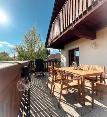 This property offers access to a balcony, free private parking, and free Wifi. Outdoor seating is also available at U farmy. Offering a terrace and mountain views, the spacious vacation home includes 3 bedrooms, a living room, flat-screen TV, an equipped kitchen, and 2 bathrooms with a bidet and a bath. Towels and bed linen are offered in the vacation home. There's also a seating area and a fireplace. Guests at the vacation home will be able to enjoy activities in and around Velhartice, like cycling. Outdoor play equipment is also available at U farmy, while guests can also relax in the garden. The nearest airport is Ceske Budejovice Airport, 65 miles from the accommodation.