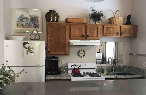 Our guest house is a two bedroom, roomy fully air conditioned home and sits in the heart of the historic Sam Hughes Neighborhood just 1 block from the U of A. Our guest house has high vaulted ceilings, unique and comfortable furnishings and is able to accommodate 4 adults or a family quite nicely. I can place a small pak & play in a bedroom for a fifth person, but 5 normal size people doesn't work unless you really want to be close. We have a secured gated courtyard for bike storage, two parking spaces, full size kitchen with all needed appliances including microwave, plate settings, pots/pans and coffee maker. The living space has bar seating, a flat screen TV, Sling, ROKU,Netflix, anntena local tv & WiFi , ceiling fans,AC and a love seat and two chairs. We have provided a washer,dryer,iron/board & blow dryer for your convenience and the courtyard features a patio for evening visits. One bedroom is furnished with two comfy twin beds, luxury sheets and plenty of closet space. The tastefully decorated second bedroom has a brand new beauty rest king bed with luxury bedding and a large closet. The full size bathroom has both a shower and tub for your convenience along with luxurious towels and hand-made soaps to make your stay extra special! The U of A is just one block away, with the University Medical Center across the street. A Whole foods Market and a Safeway are within a mile, along with Reid Park (Tucson's largest park with two 18-hole public golf courses, Reid Park Zoo, Randolph Tennis Complex, Aquatic Center, and a 6 mile tree lined bike/walking path). We sit 3 blocks from the lush and very active Himmel Park and just a short walk to our favorite local Rincon Market/Deli and Bob Dobb's Pub on game days. The street car "link" route is 1 block from our door at Speedway and Campbell and an easy route to the vintage and unique shops of Fourth Ave., University Ave., museums, wonderful eateries, theaters and more. I can assist you with any directions and reservations if needed. Please understand that weekly and monthly pricing is for all months except the Gem Show Jan. 19 thru Feb. 18. This rate is $850 for a week and $3000 for the 31 days, which is about $95 a night for a two bedroom house/peak time. The nightly rate is $150 during Gem Show. I look forward to hosting you.