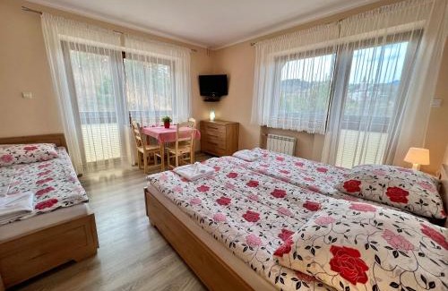 , u Uli'' kwatery i domek offers accommodations in Piwniczna-Zdrój, 24 miles from Krynica Zdroj Train Station and 24 miles from Nikifor Museum. This homestay provides free private parking and a shared kitchen. Rooms come with a flat-screen TV with satellite channels. At the homestay, units come with a wardrobe. Every room includes a kettle, a private bathroom, and free Wifi, while selected rooms are equipped with a terrace and some have mountain views. At the homestay, every unit includes bed linen and towels. Guests can also relax in the garden. Lubovna Castle is 14 miles from the homestay, while Wierchomla Train Station is 4.3 miles away.