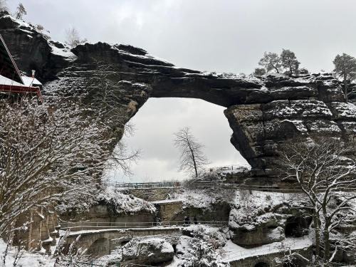 U Vaclava in Hřensko provides accommodations with a garden and a bar. With garden views, this accommodation provides a patio. Free Wifi is available and private parking can be arranged at an extra charge. At the bed and breakfast, units are fitted with a wardrobe. All units have a private bathroom and a shower, and certain units at the bed and breakfast have a terrace. The bed and breakfast also provides guests with outdoor fireplace and a picnic area for a day outdoors. Königstein Fortress is 13 miles from the bed and breakfast, while Saxon Switzerland National Park is 13 miles away.