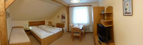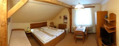 U Votápků features accommodations in Nové Hutě. Offering a restaurant, the property also has a garden and barbecue facilities. There's an outdoor fireplace and guests can access free Wifi and free private parking. At the homestay, units have a desk. At the homestay, units are equipped with bed linen and towels. For guests with children, the homestay offers outdoor play equipment and a baby safety gate. Skiing, cycling, and hiking are possible within the area, and U Votápků offers ski storage space. Ceske Budejovice Airport is 44 miles from the property.