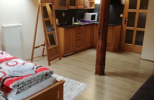 Ubytovani na hradbach has mountain views, free WiFi and free private parking, set in Broumov, 31 km from Polanica Zdroj Train Station. Each unit comes with a fully equipped kitchenette with a dining table, a flat-screen TV with cable channels and a private bathroom with shower, free toiletries and a hairdryer. A fridge, a microwave and stovetop are also offered, as well as a kettle. Hiking and cycling can be enjoyed nearby. Książ Castle is 40 km from the apartment, while The Grandmother's Valley is 41 km from the property. The nearest airport is Copernicus Wrocław Airport, 104 km from Ubytovani na hradbach.